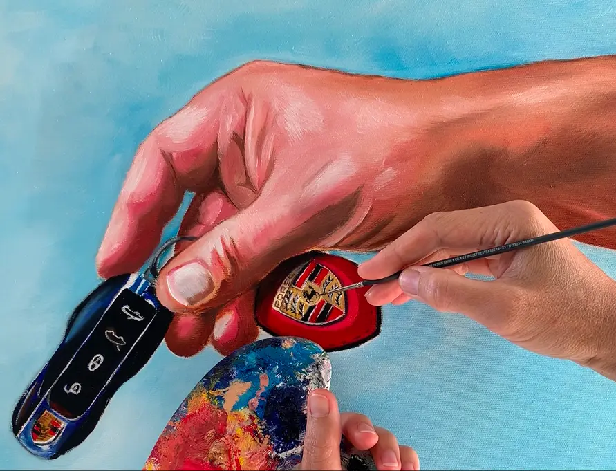 My work revolves around figurative oil painting — whether it’s the sleek lines of a car, the soul behind a gaze, or the quiet presence of an animal. Each painting is deeply personal and emotionally charged.