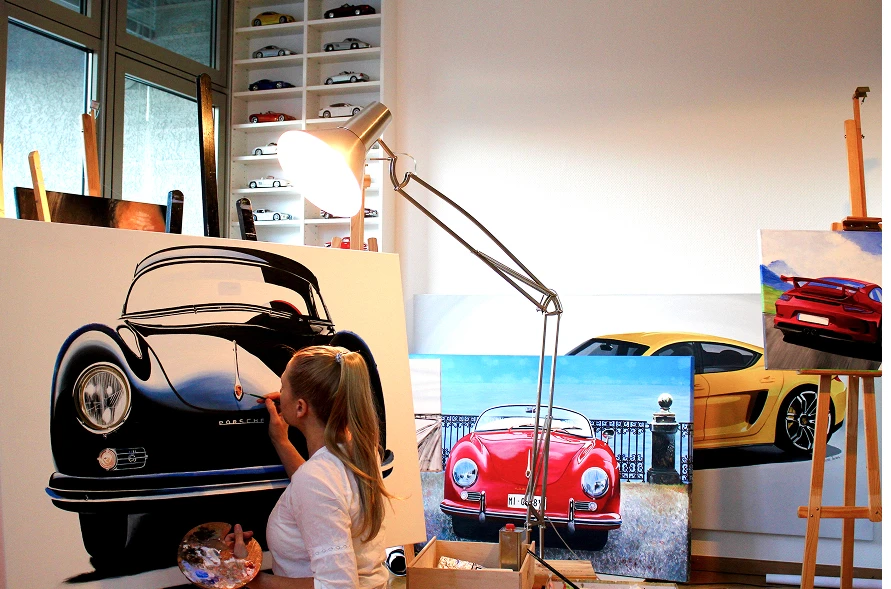 “My art lets the Porsche speak. Not through the best sound in the world, but through silence, graceful curves, vibrant color, and feminine power.”