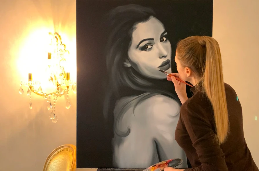 I work mainly with oil on canvas — it allows me to express depth, emotion, and subtlety in every layer. Depending on the subject and atmosphere I want to create, I also use acrylics, glass paints, and other media. I prefer using high-quality, environmentally conscious paints from Germany and the Netherlands. Their rich colors and durability meet the highest artistic standards. One of my favorite surfaces is fine Belgian linen. Its texture, strength, and longevity make it ideal for museum-quality work.